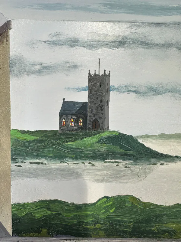 An original 3D reverse perspective oil painting by visual trickery artist John Wilson.