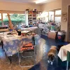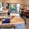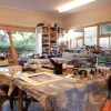 Since then it has seen the presence of many local and international artists and guests, and used as a place to hold workshops and meetings - most recently including printmaking workshops with the new Coromandel collective 'Printmakers Combined', to which she belongs. The light, spacious interior with plenty of sturdy working surfaces makes it the perfect venue to host a small group of artists, while the generous wall area allows Paula to test her works before exhibiting them in the gallery. An unexpected highlight is the 'Tribute to Hundertwasser' bathroom, where mosaic tiles are collaged in a colourful array across the walls.