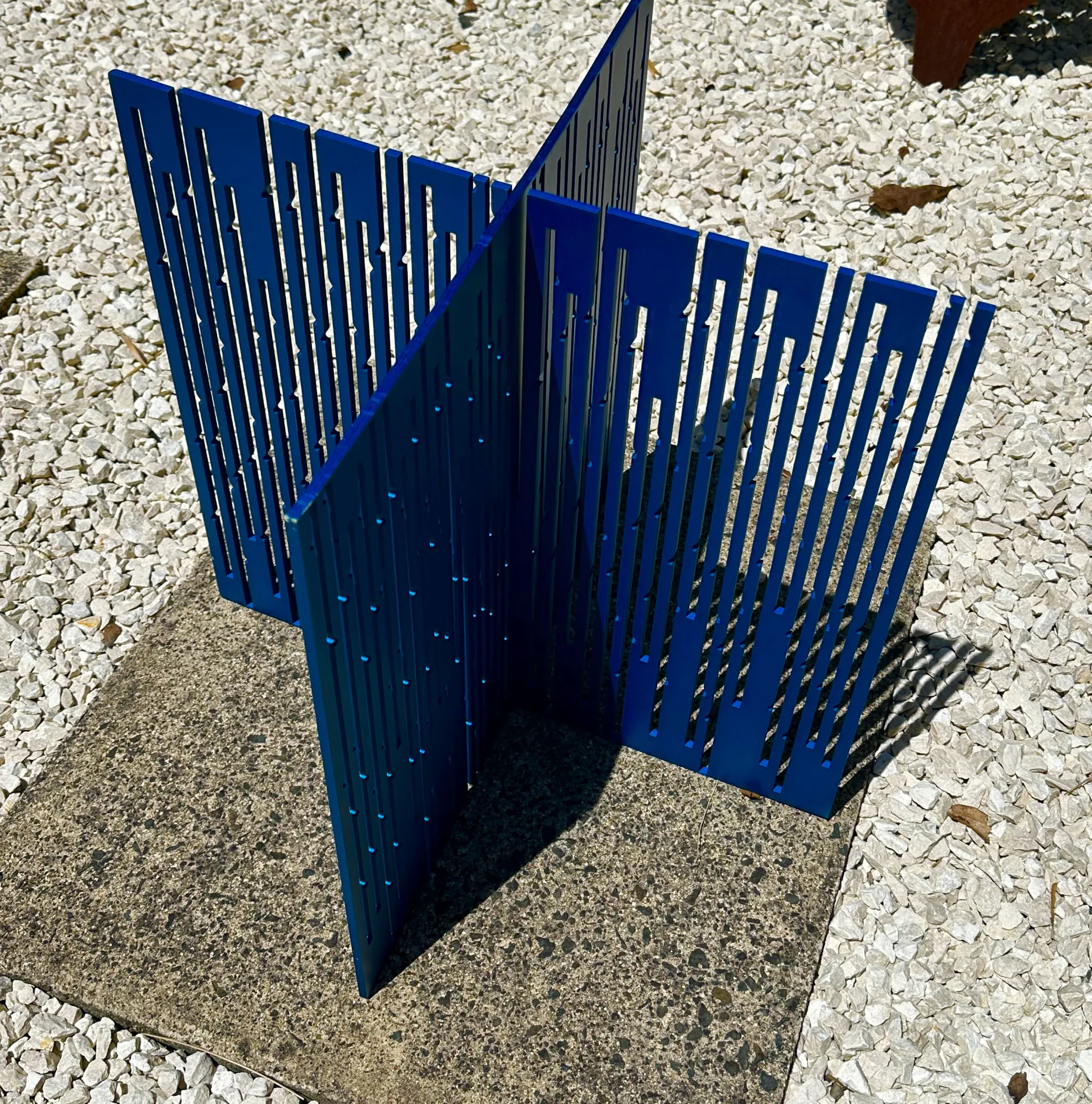 An anodised aluminium blue sculpture by talented artist and jewellery Peter Muller.