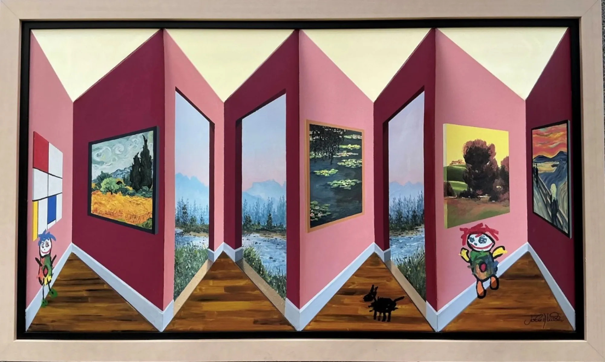 A print and original hybrid 3D reverse perspective oil painting by Omokoroa based artist John Wilson.