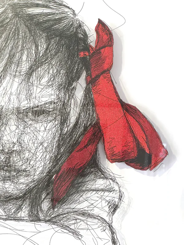 50 x 60 cm, black frame. Only 5 in each ribbon colour edition.