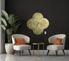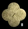 An original wall hanging on board in the shape of a quatrefoil, painted with layers of gold paint, gold leaf and resin. Created by artist Kristin Hyde.