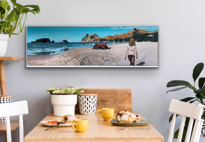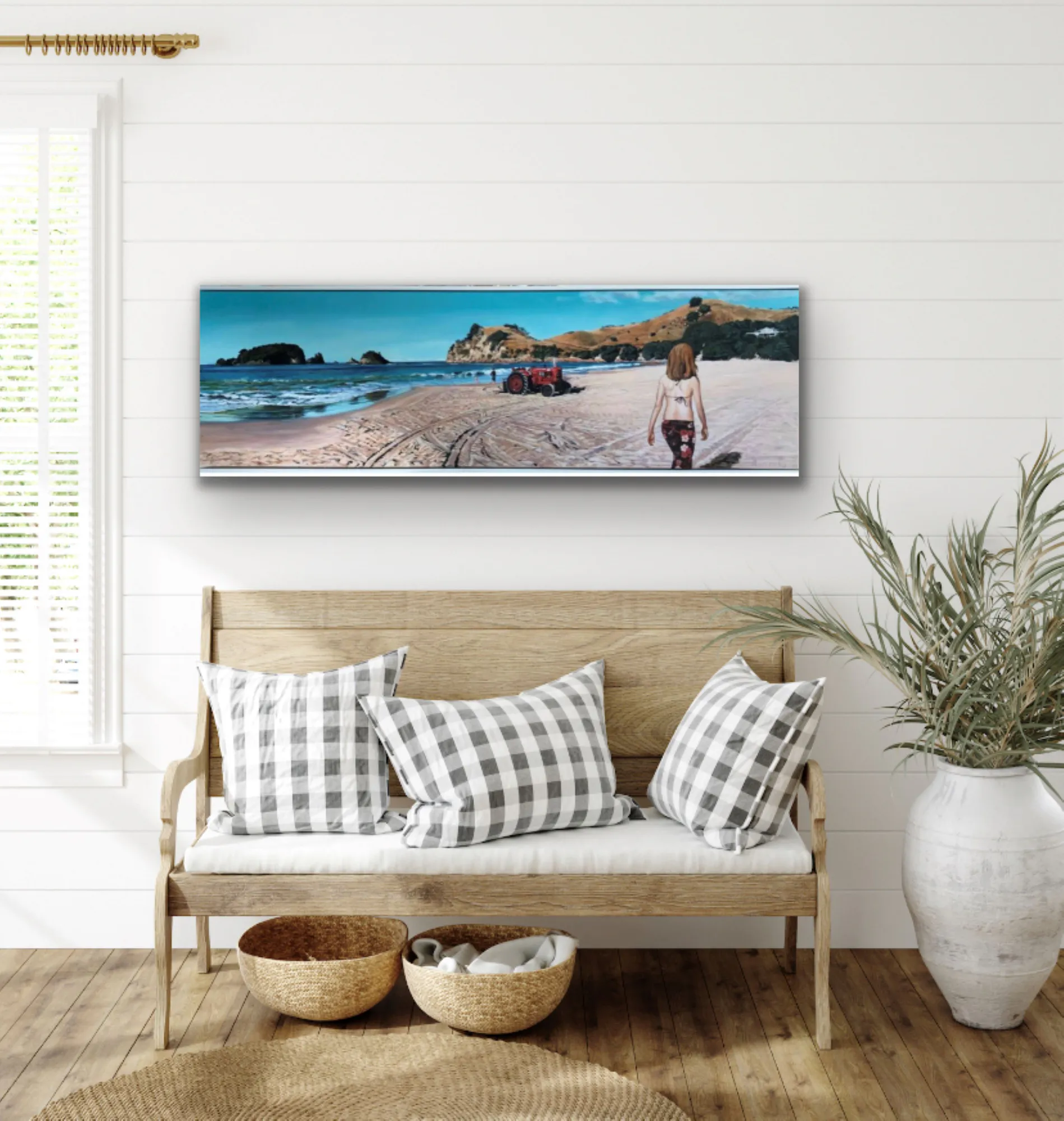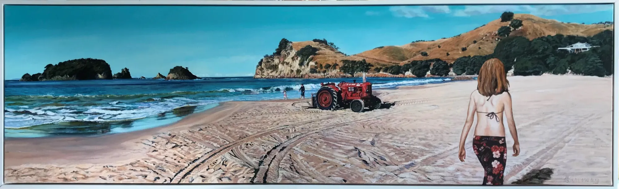 Jane's originals are very sought after and this classic scene of a Hahei summers day with the iconic red tractor will be no exception.