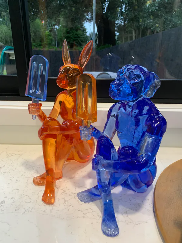 Gillie and Marc are determined to continue finding a newness in their art. Often their work addresses themes as serious as diversity, acceptance and otherness. However, the artists feel that when someone brings art into their home, it should bring joy and brightness. Gillie and Marc’s Lolly Collection, or Lollies as they’re affectionately known, showcases the brighter side of the artists’ sensibilities. The clear resin has been created to capture and play with the light in a room and to brighten any space. This colourful resin makes an attractive statement piece and will invigorate any home.