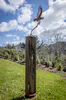 An original Corten Steel Kahu on recycled timber Totem with chain by Rustic Soul Sculptures