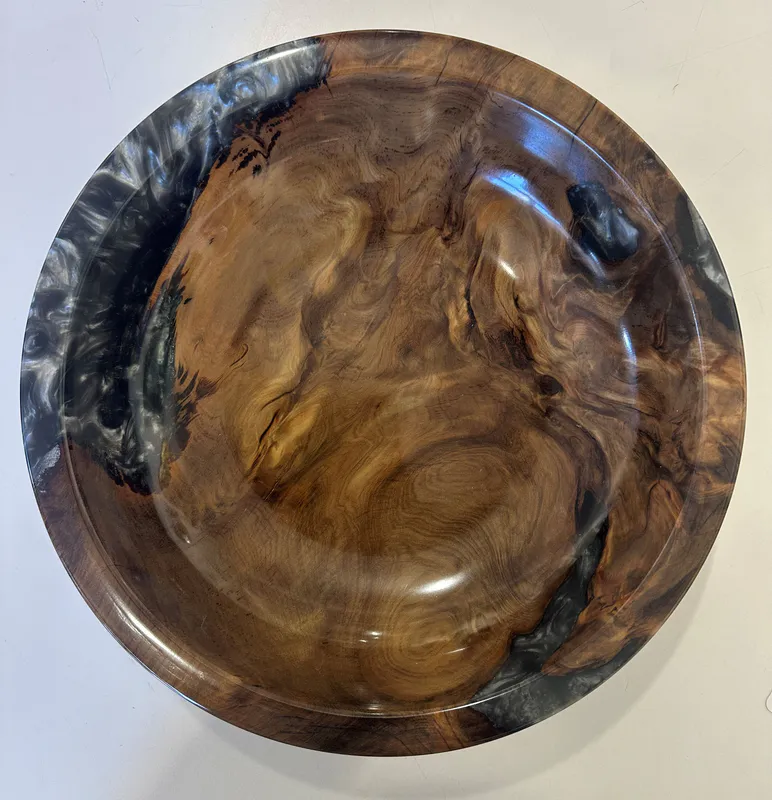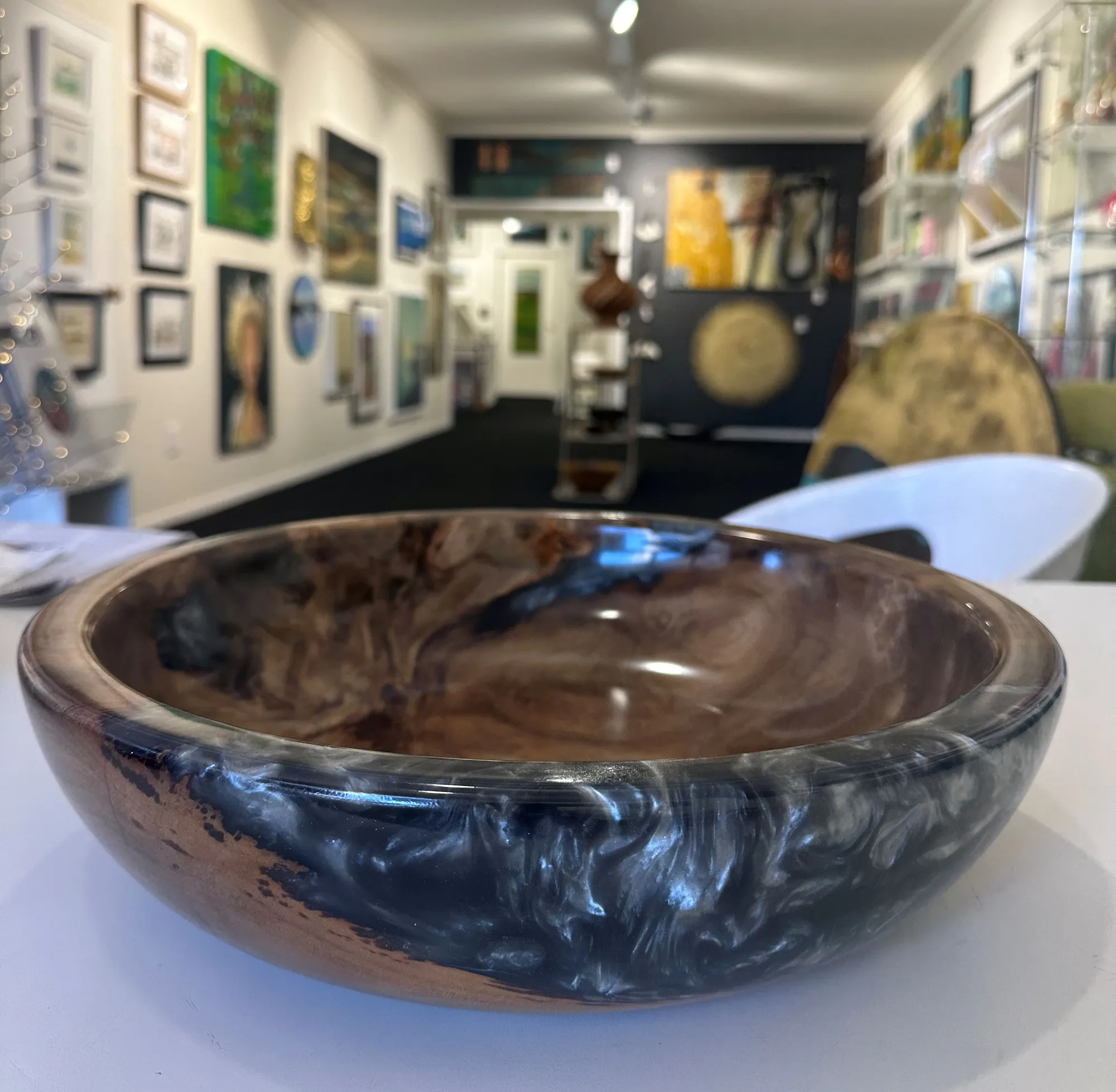 A large handcrafter Kauri and Grey Resin bowl by Stephen Hodson