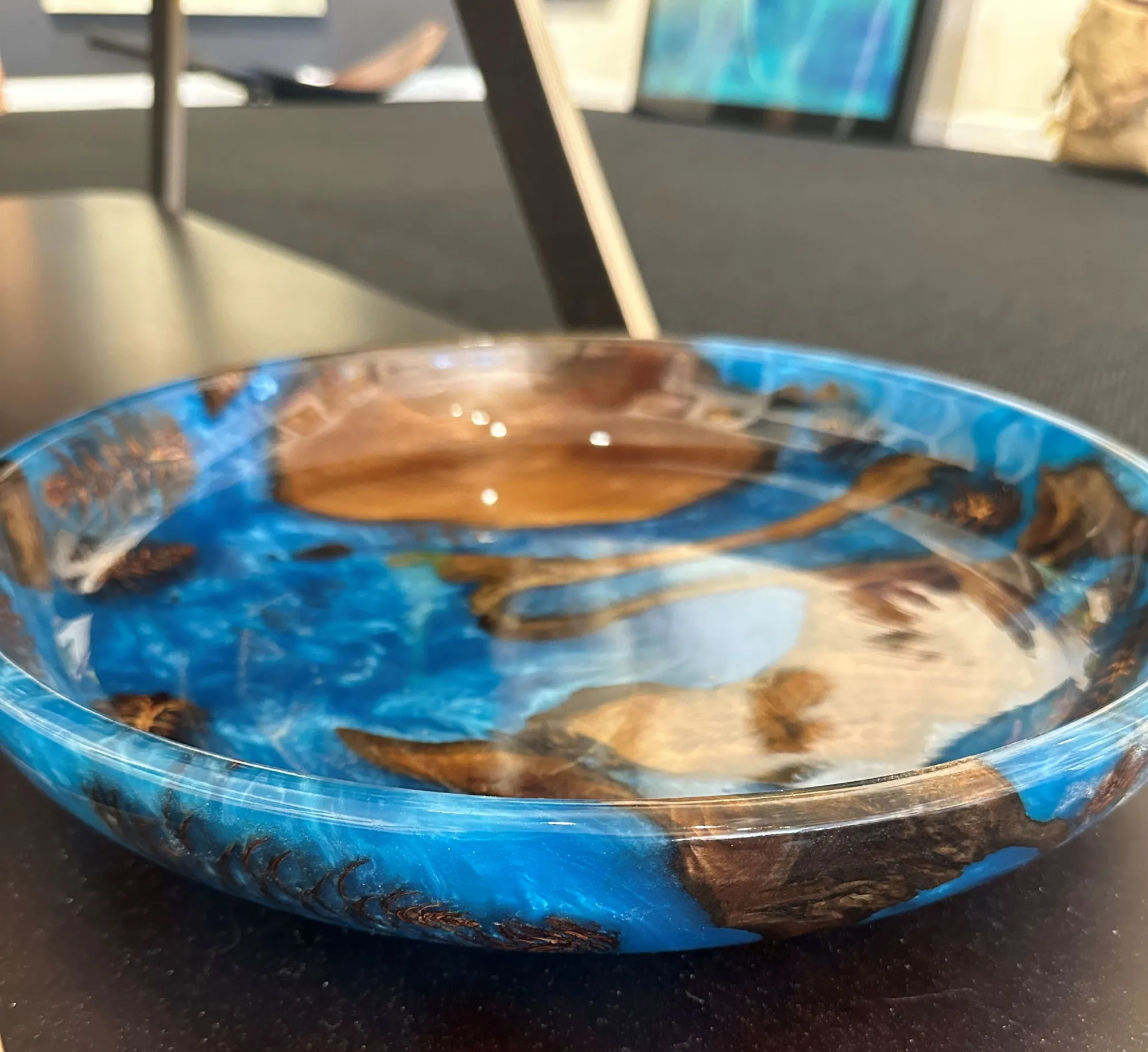 A handmade Swamp Kauri and Resin Platter by Stephen Hodson