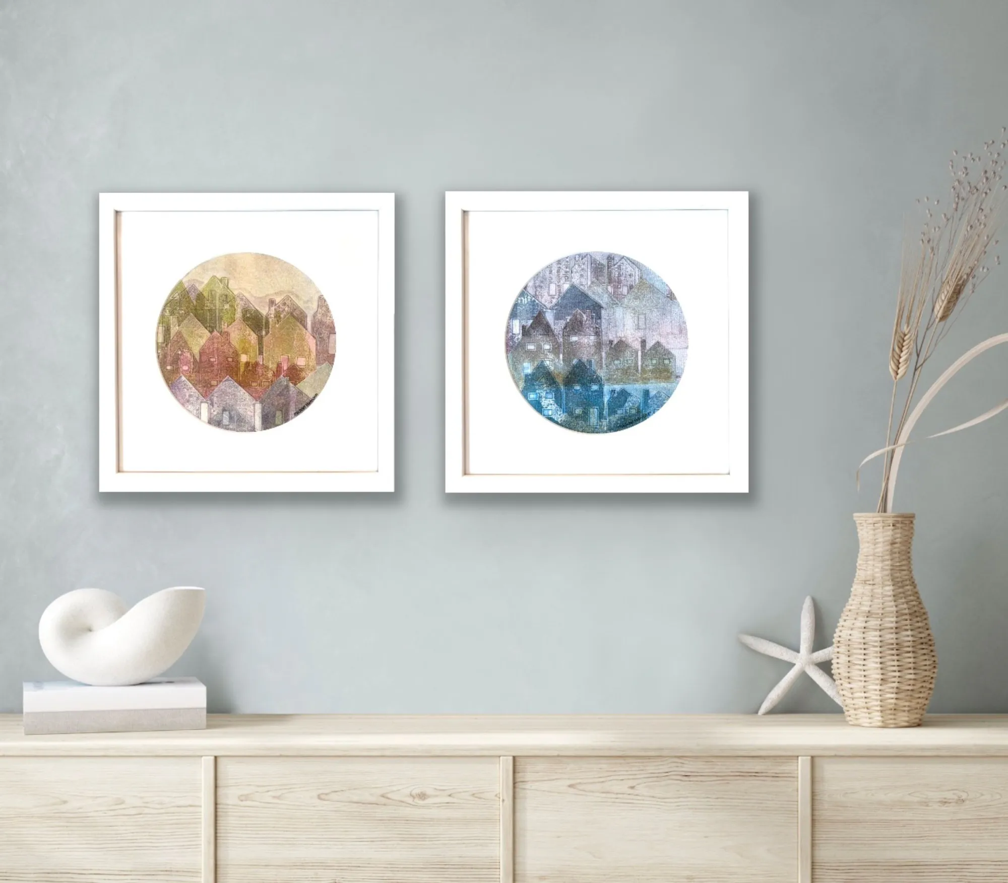 33.5cm square in white frame (Image size 20cm diameter)