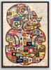 An original artwork of a Tiki created using lots of matchboxes by Artist Lyndy Wilson.