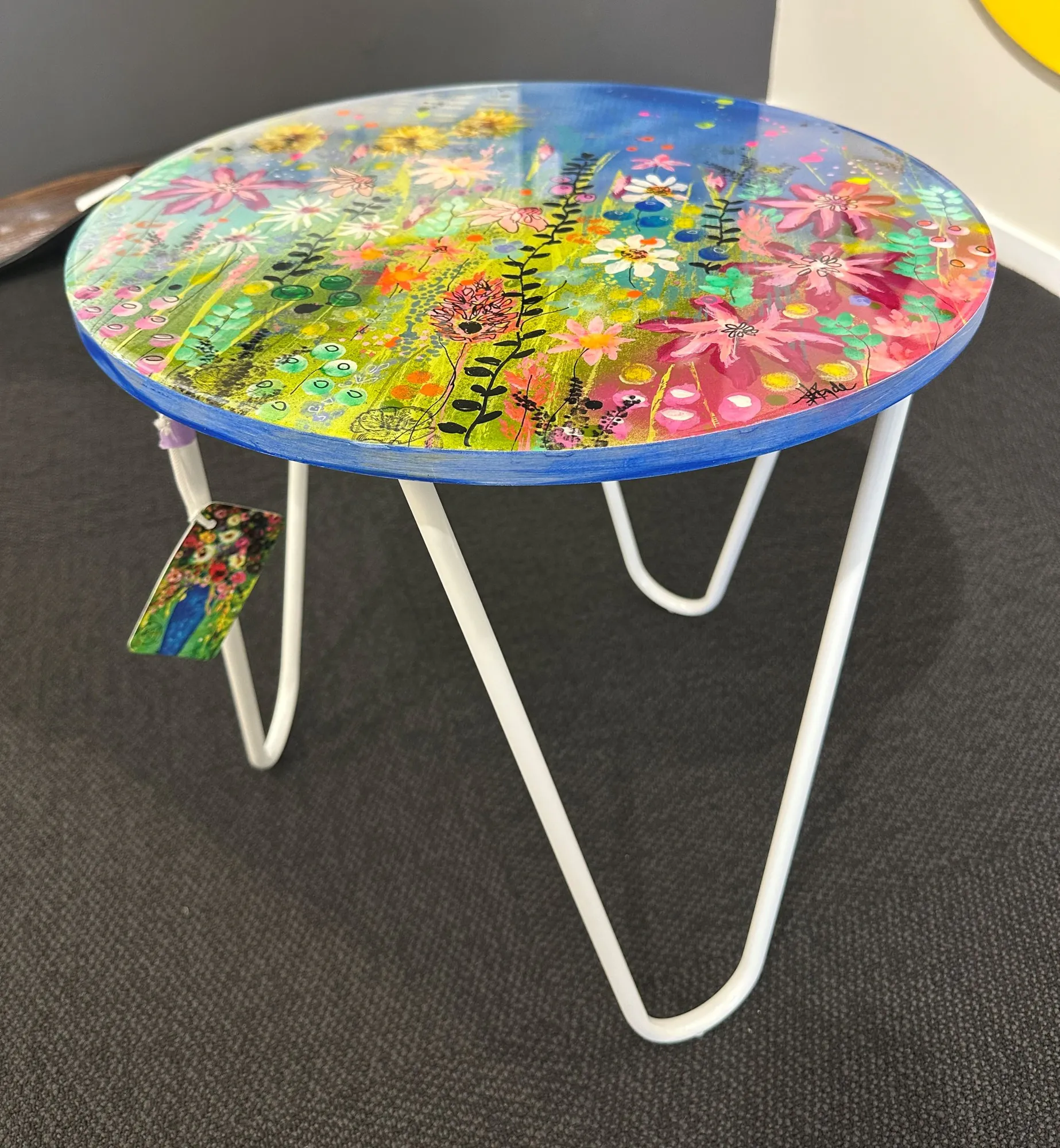 An original Acrylic painted, Resin-coated Side Table by Joanne Mahoney