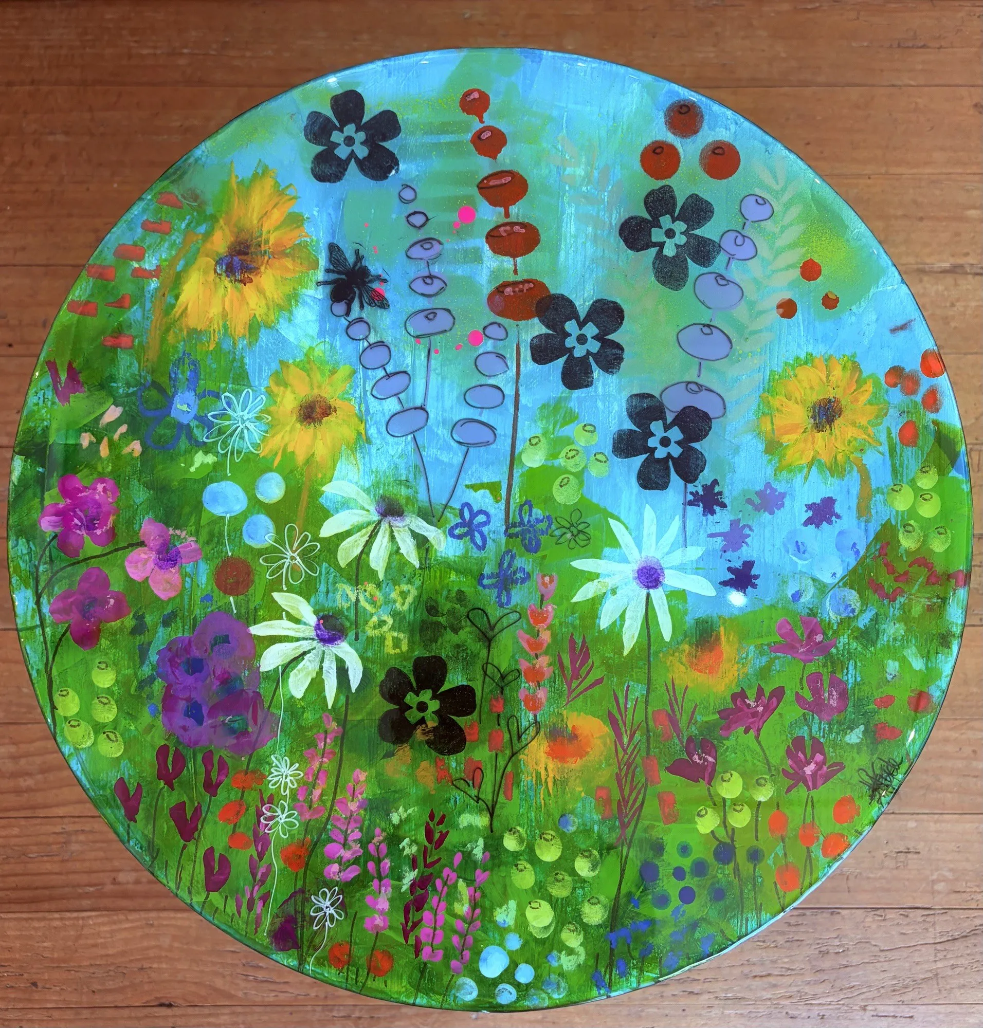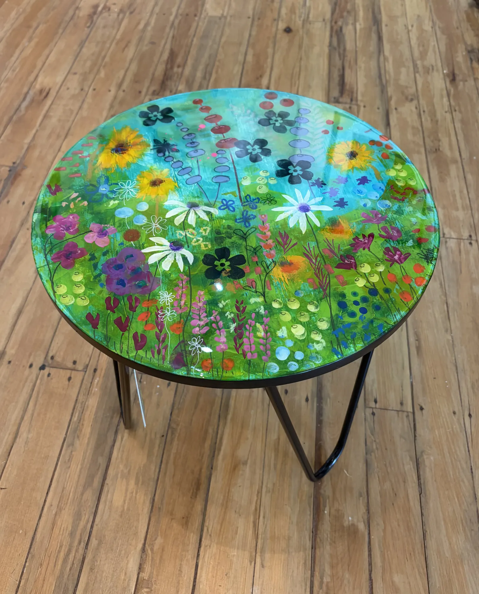 An original Acrylic painted, Resin-coated Side Table by Joanne Mahoney