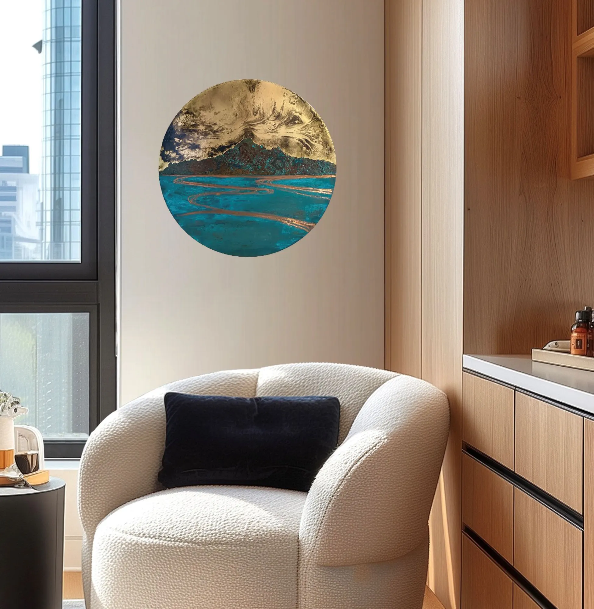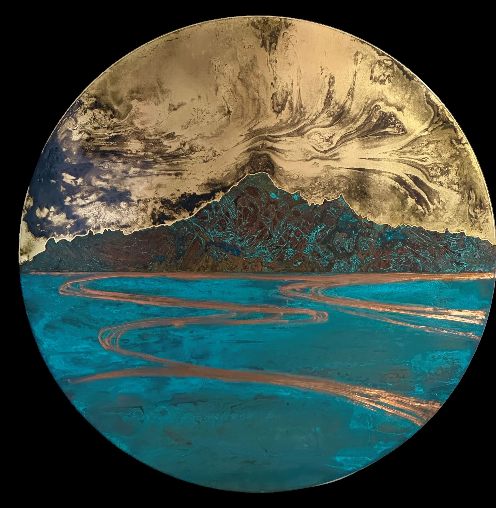 A circular original artwork in copper by Jasmine Keir