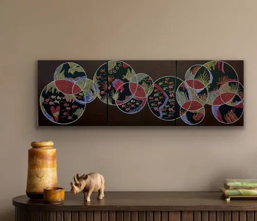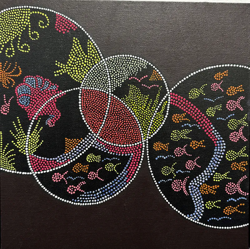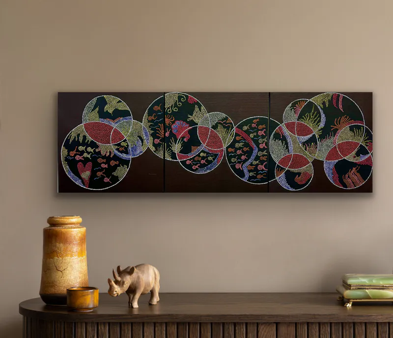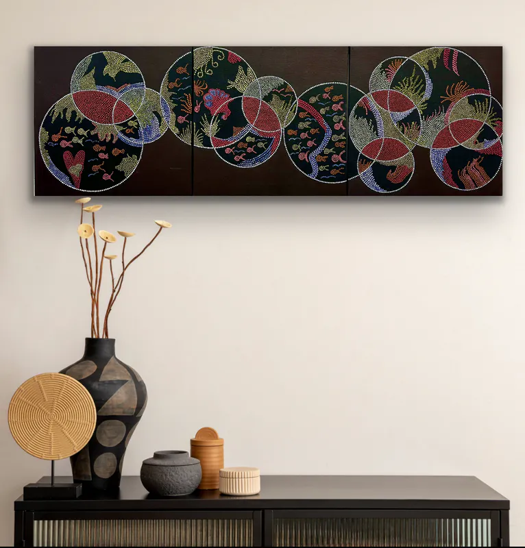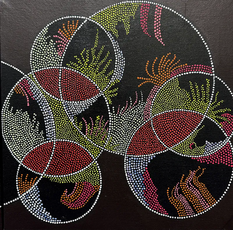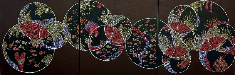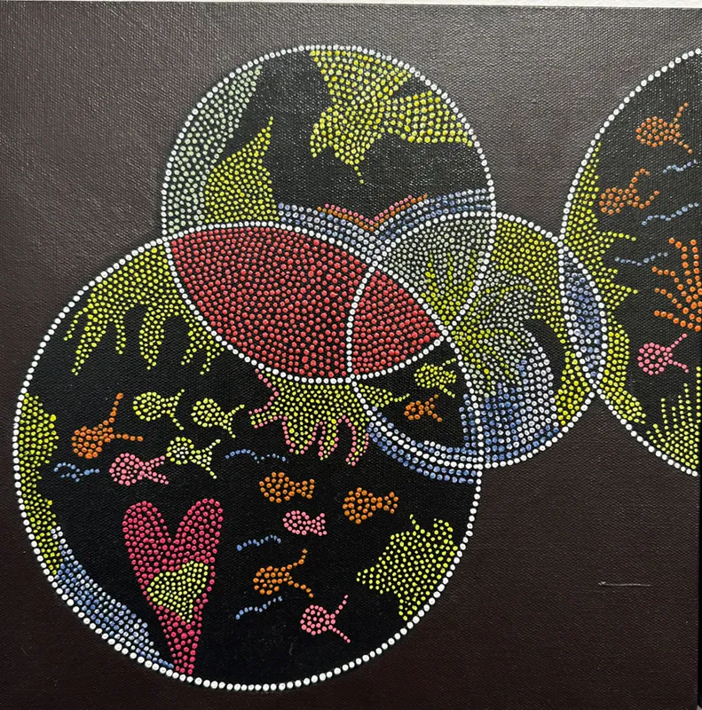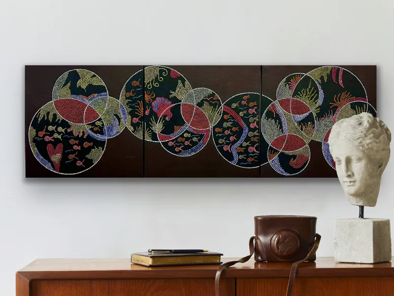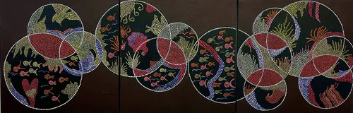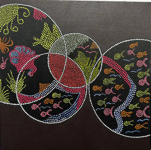 Created using tiny dots of acrylic paint to create the images - see if you can find all the animals that don't live under the water!
