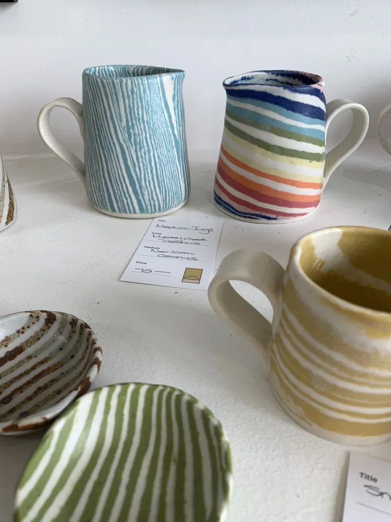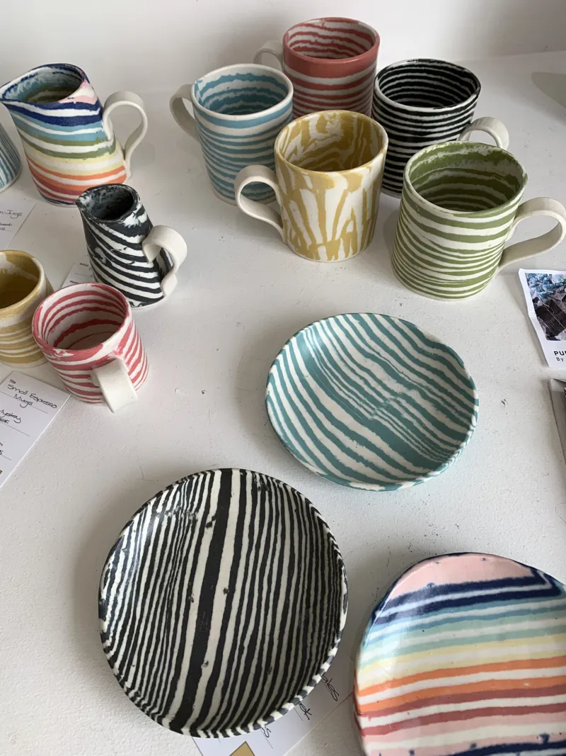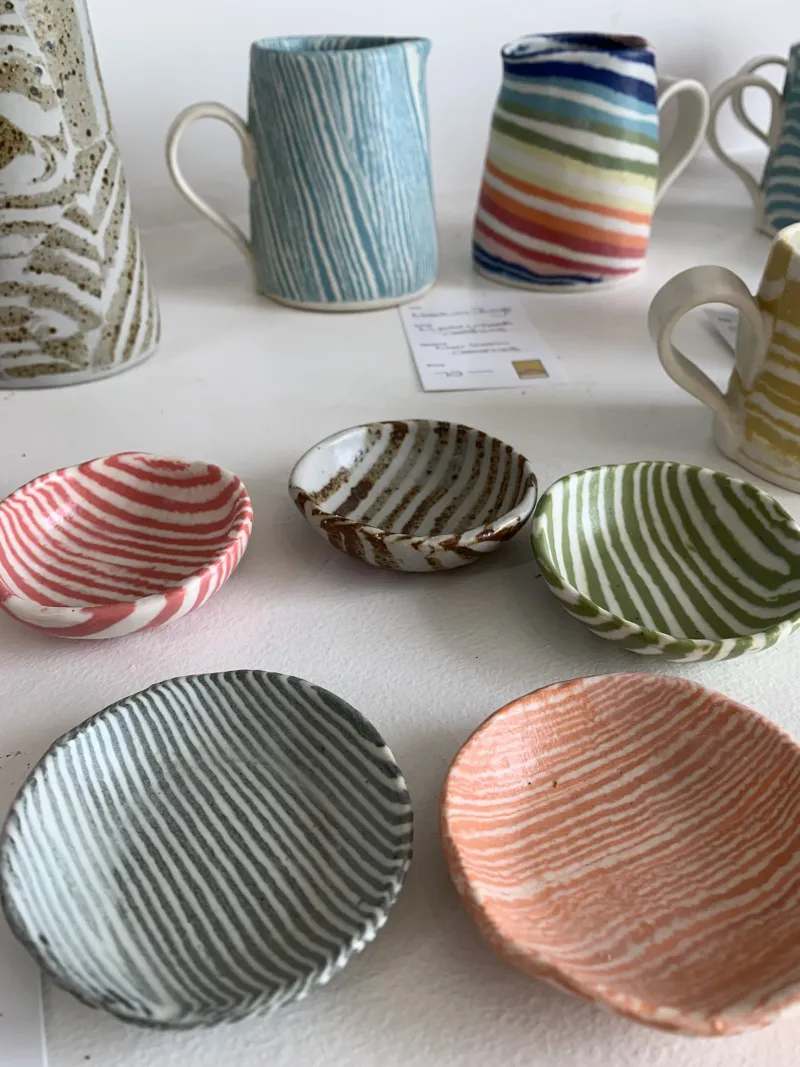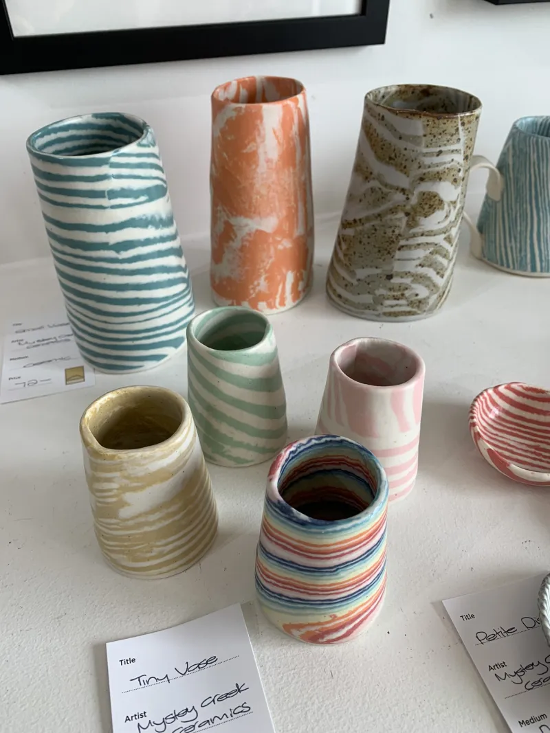 A large selection of Nerikomi ceramics created by Mystery Creek Ceramics.