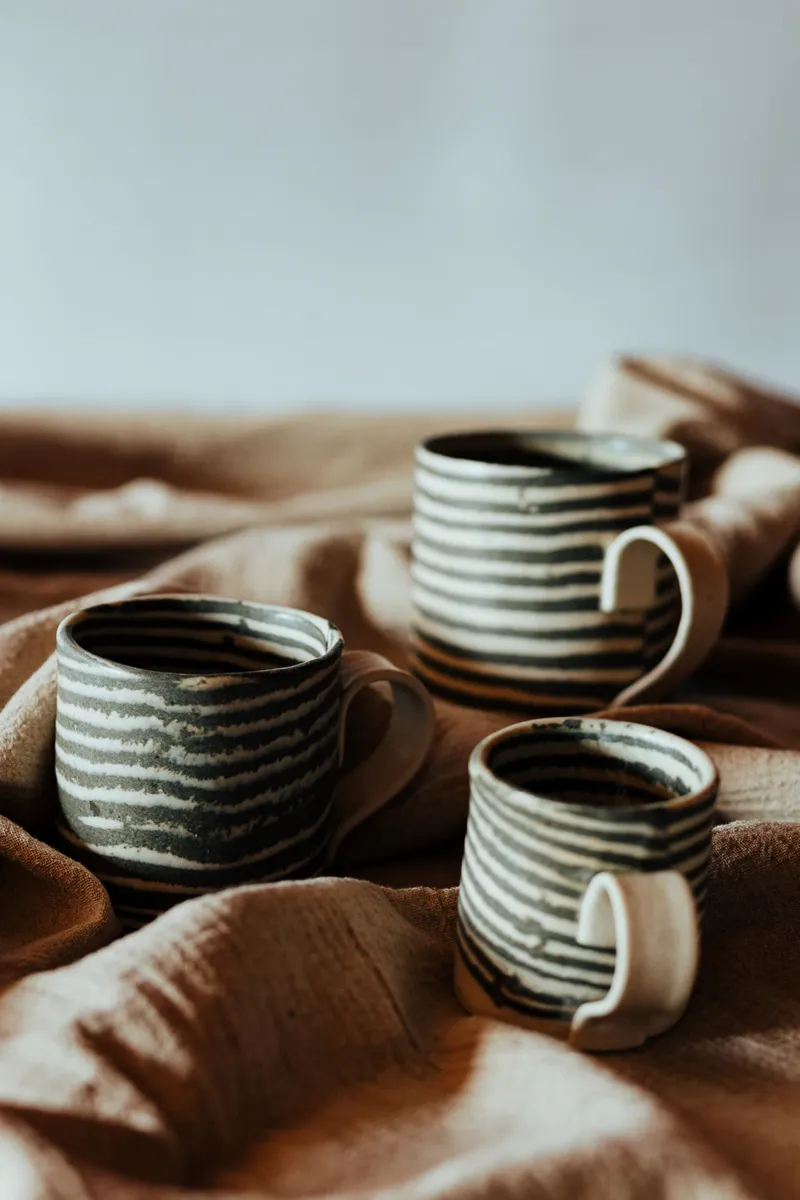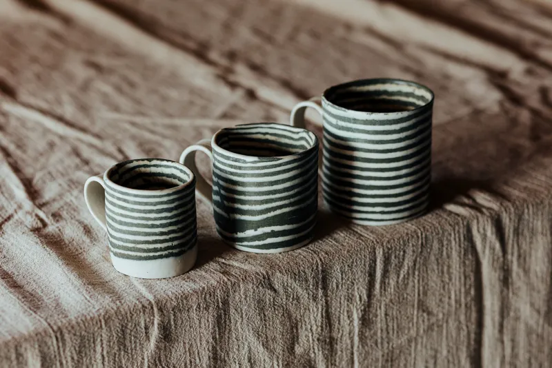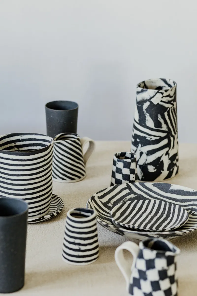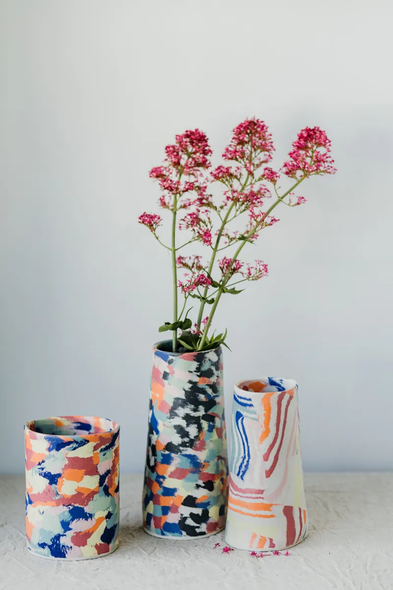 A large selection of Nerikomi ceramics created by Mystery Creek Ceramics.