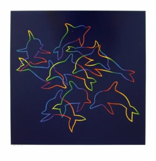 - "After contact with dolphins, both in captivity and the wild, this print expresses the simple possibility that scans of sounds (seen as colours) could reveal a group of 9 dolphins."