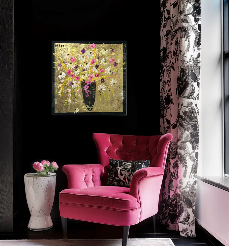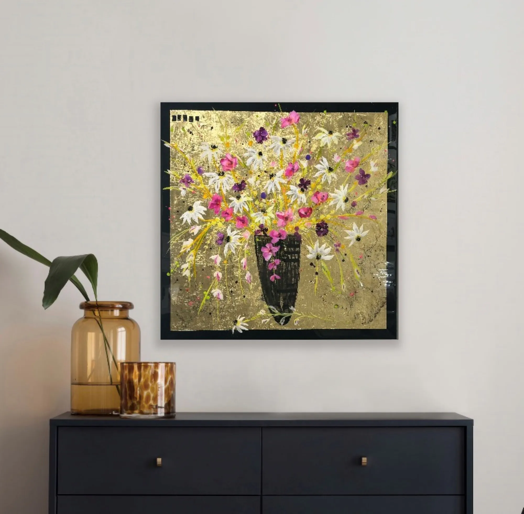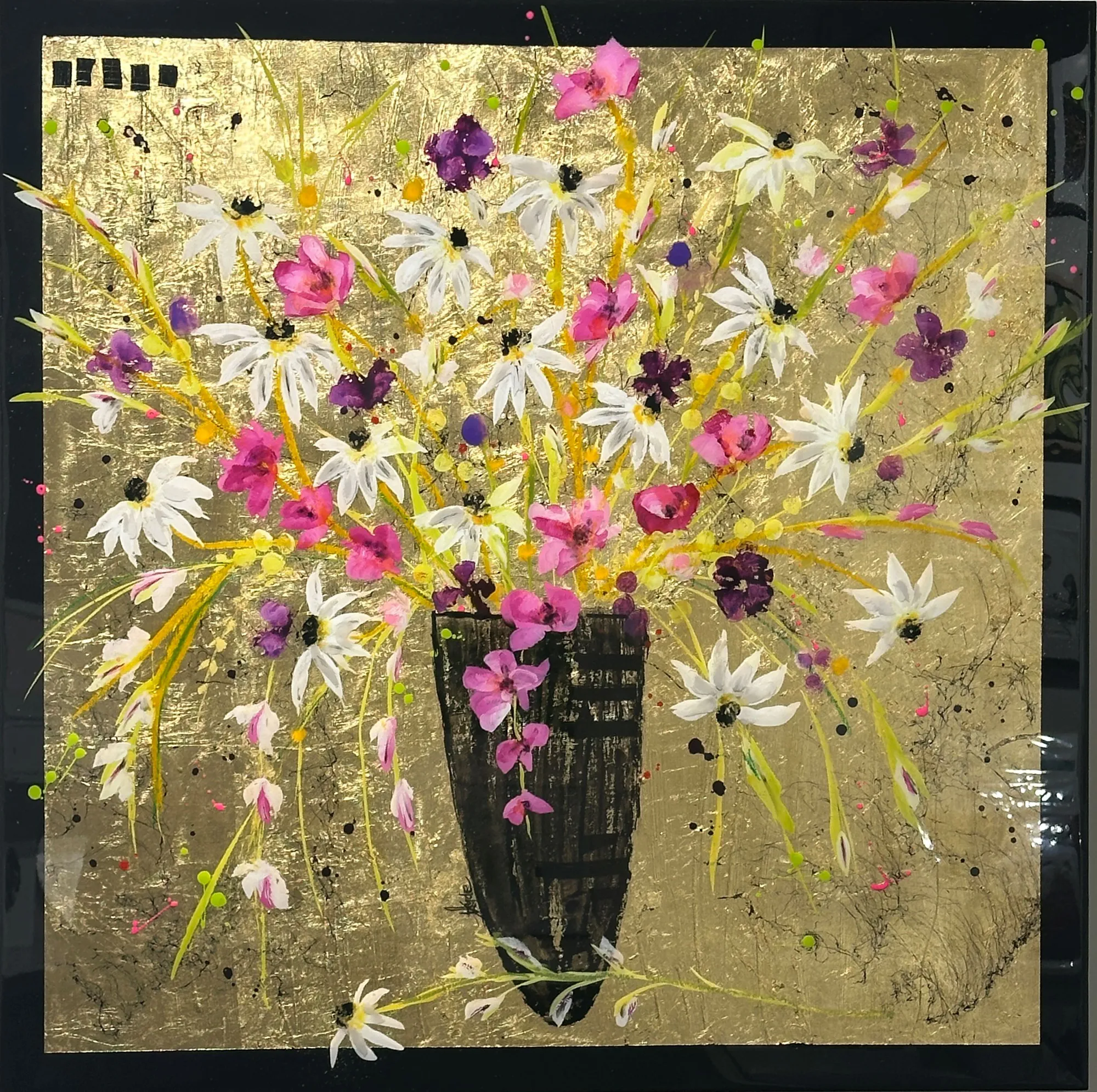 An original painting on board with gold leaf background and layers of resin to make the artwork pop.