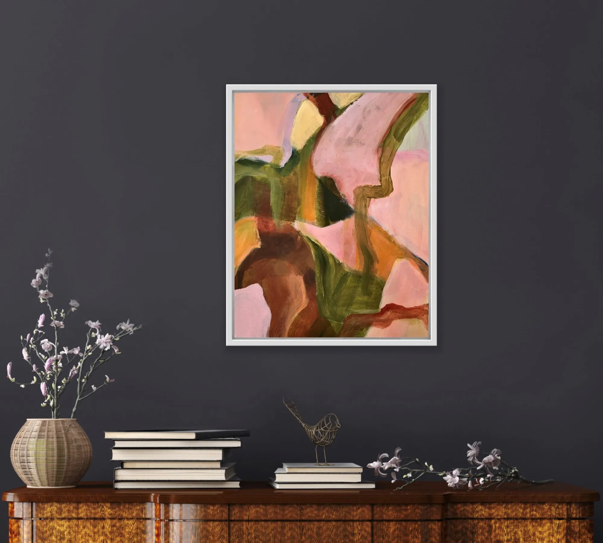An abstract acrylic painting on canvas by local Tairua Artist Susan Dunster