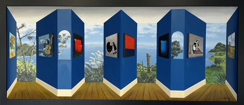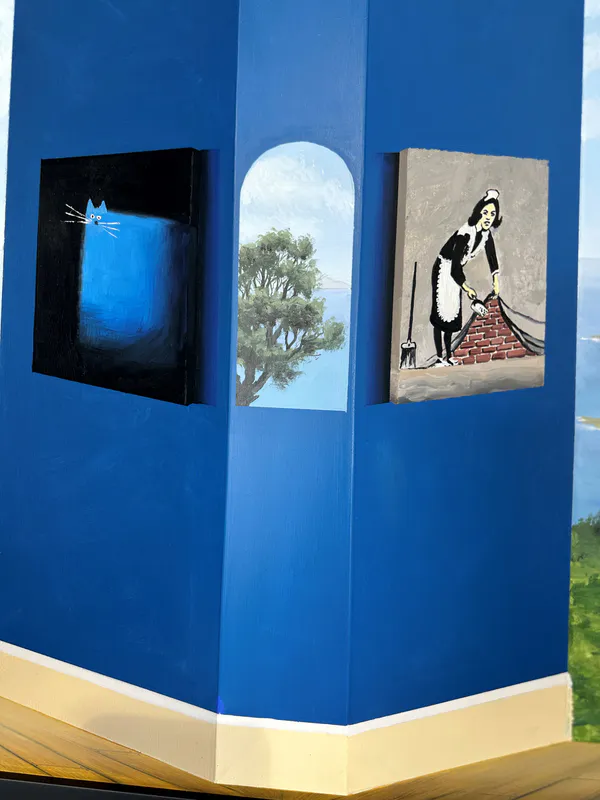 An original 3D reverse perspective oil painting by visual trickery artist John Wilson