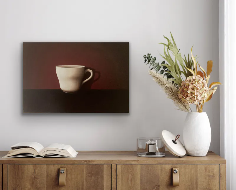 This still life captures the Crown Lynn Cup beautifully in all its splendor and classic shape.