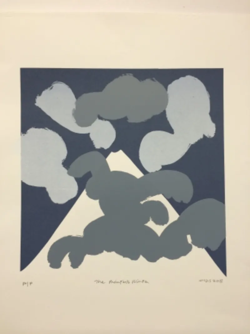 "Going through my working drawings folder I came across a 1977 gouache and decided to make it into the screenprint I had intended to make with my father in the Doralto Road Studio. This would have been the last print we made together; I’ve called the work ‘The Printer’s Winter’."