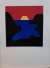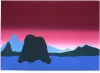 An early image of the Rock Pool Series, this is an inspired use of the torn edge of a tissue paper stencil to represent the foaming wave, set against knife cut stencil edges which represent the absolute and solid aspect of rock. The torn edge related to the clean cut edge also gives an effective illusion of space.